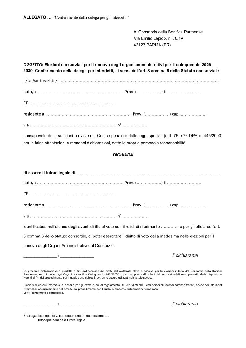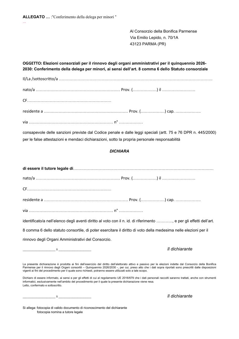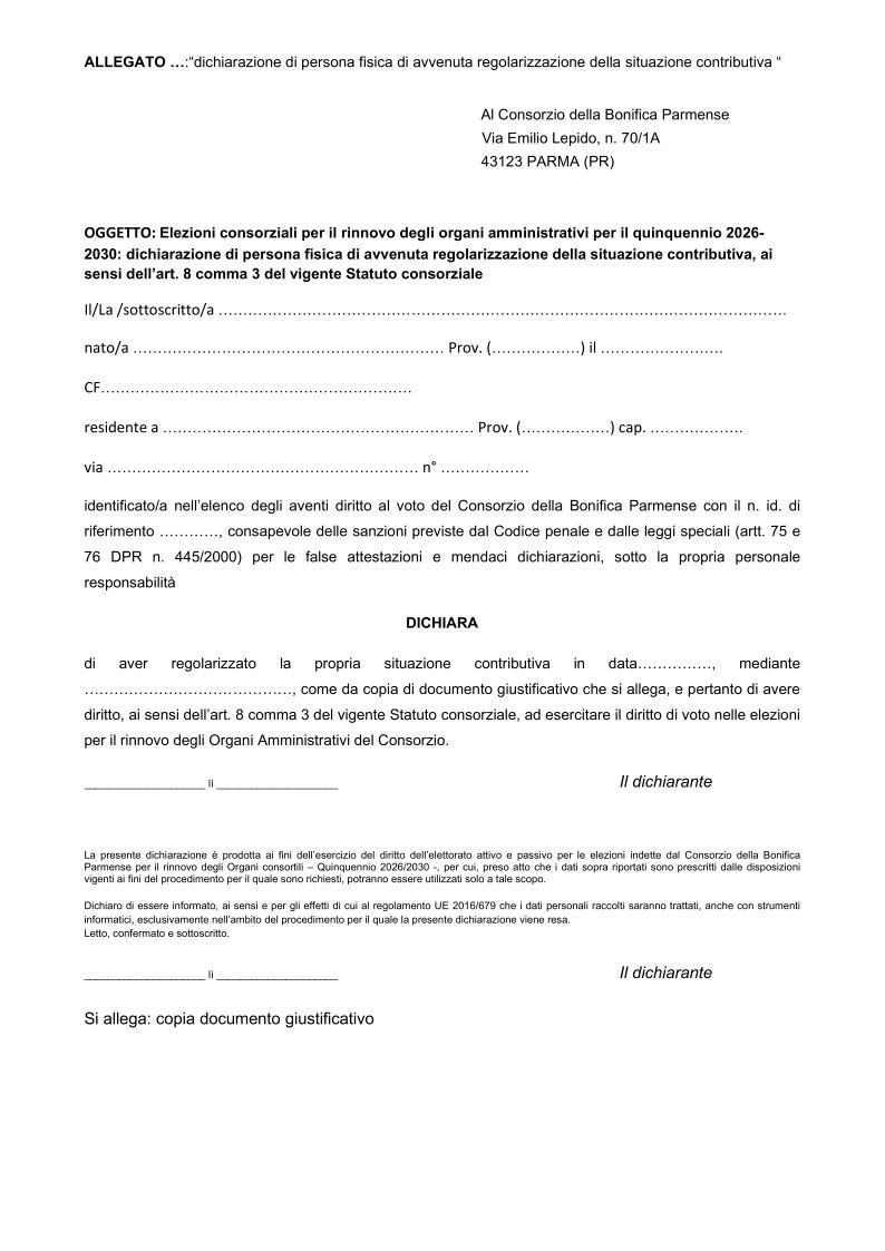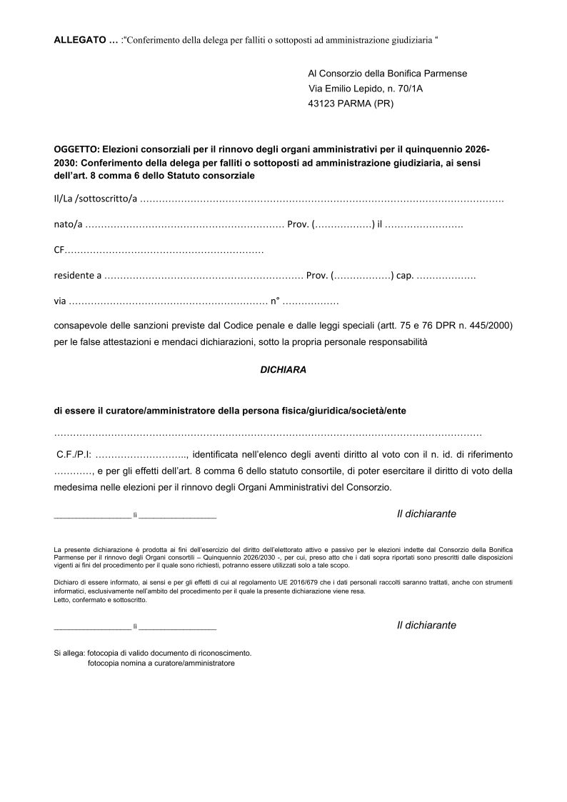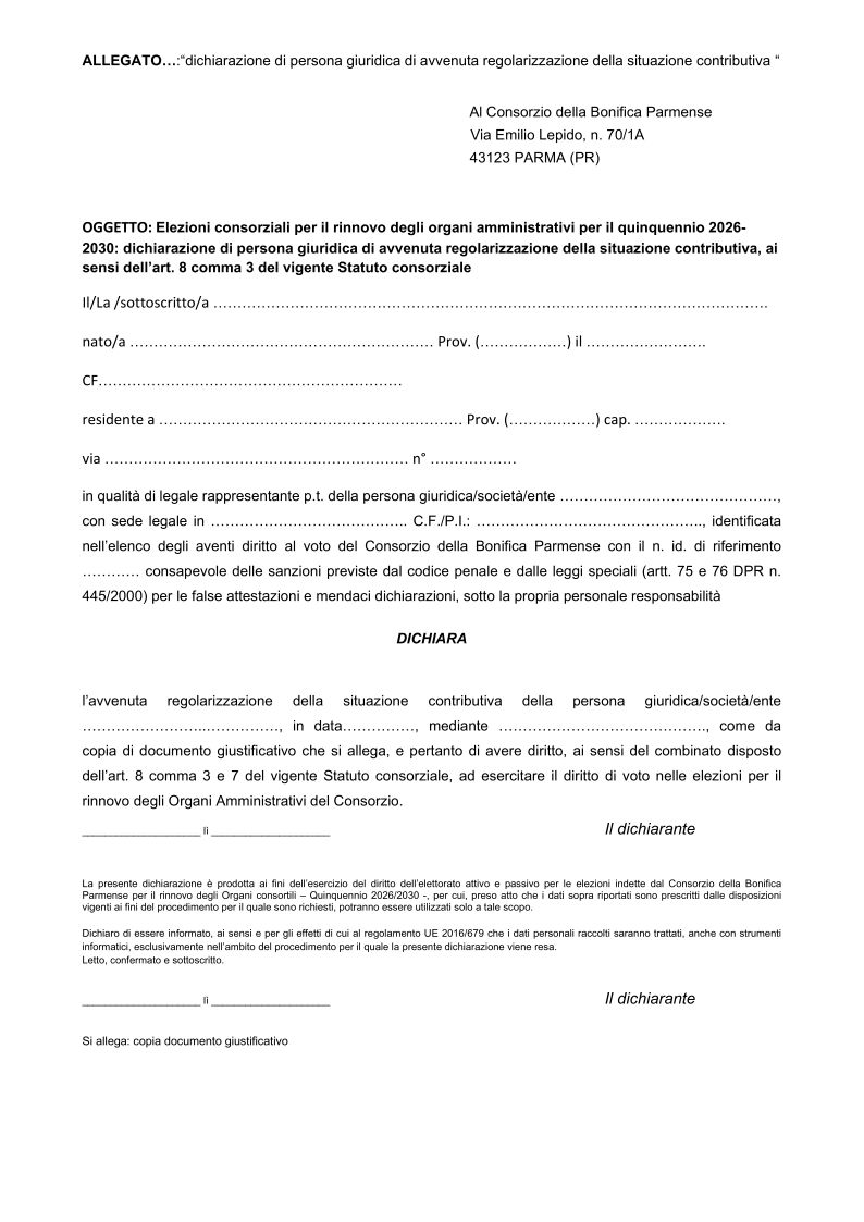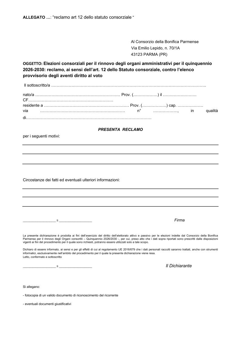 Domenica 14 dicembre 2025 dalle ore 9:00 alle ore 19:00 sono indette le elezioni per il rinnovo del consiglio di amministrazione del Consorzio della Bonifica Parmense. Sono chiamati al voto tutti i consorziati in regola con i contributi dal 2020 al 2024 scaduti e non prescritti e i rappresentanti legali che depositeranno i relativi titoli di legittimazione o autocertificheranno il proprio stato secondo le indicazioni presenti nelle “Disposizioni attuative per lo svolgimento delle operazioni elettorali”.