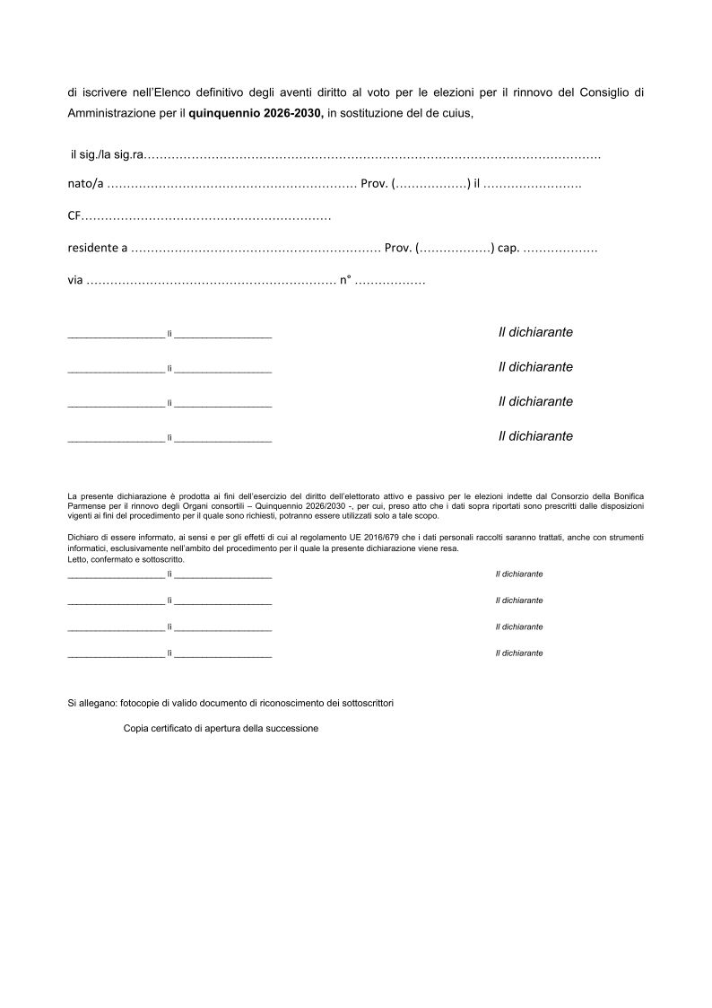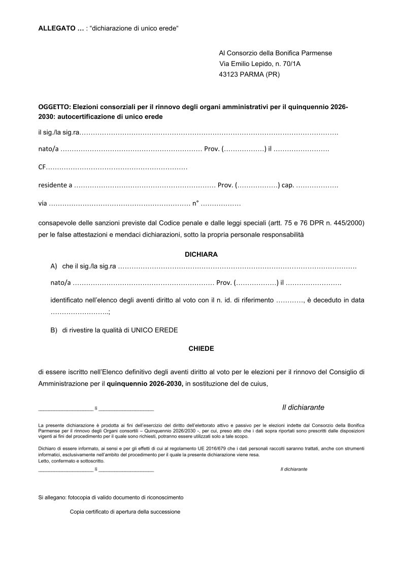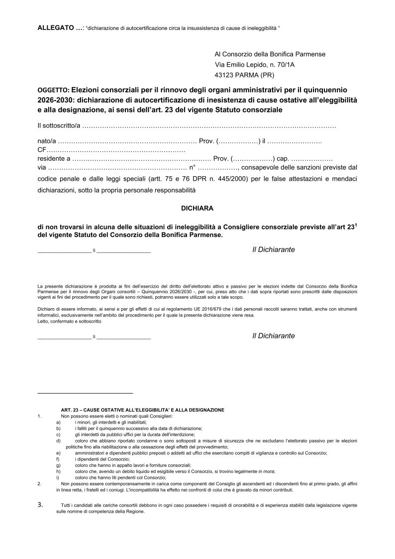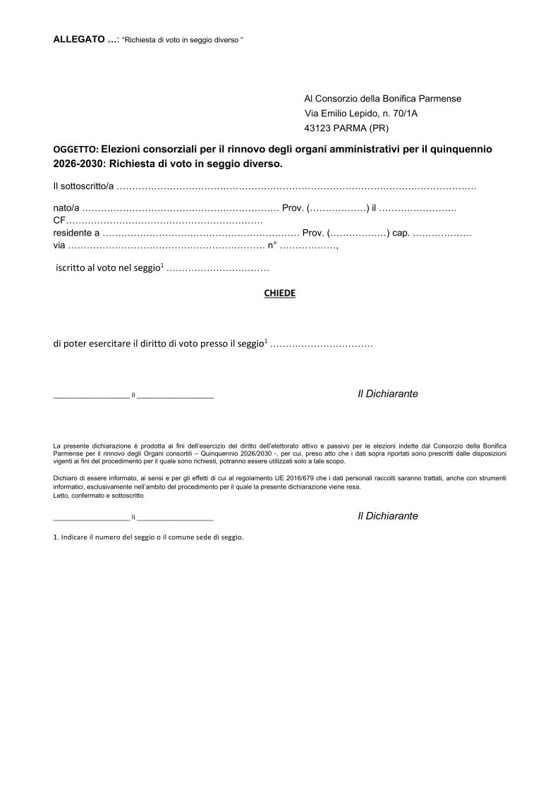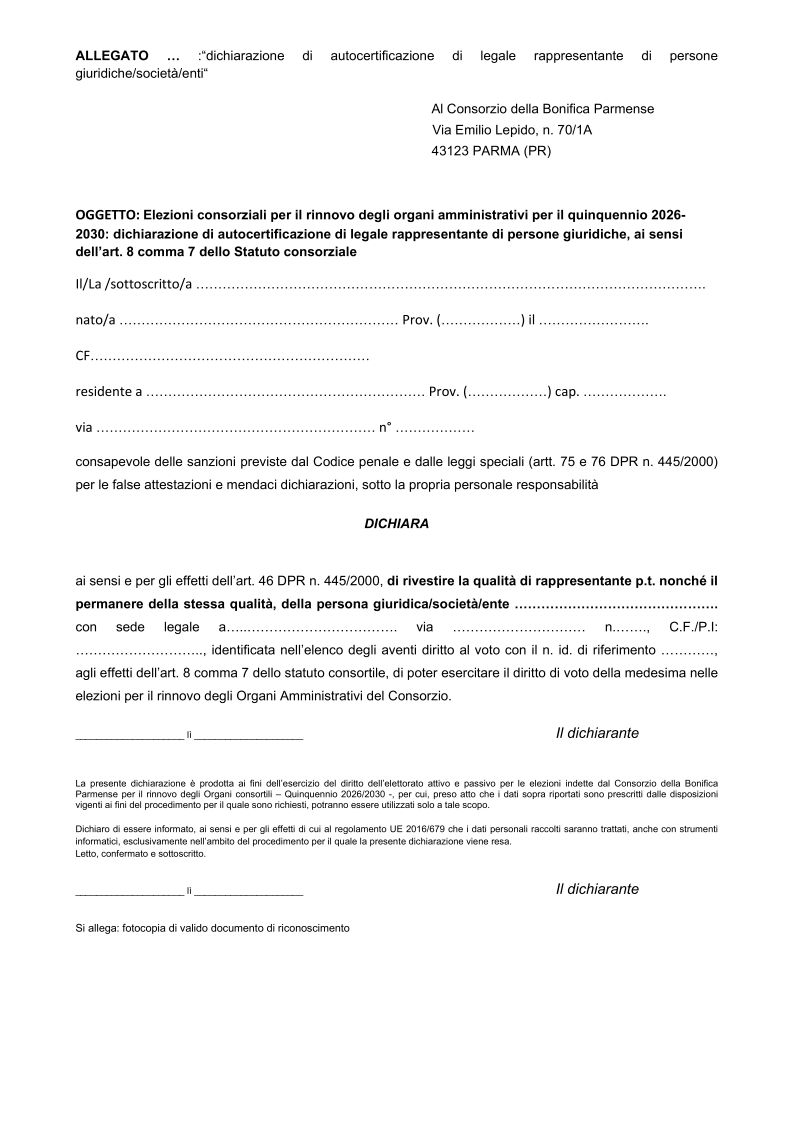 Domenica 14 dicembre 2025 dalle ore 9:00 alle ore 19:00 sono indette le elezioni per il rinnovo del consiglio di amministrazione del Consorzio della Bonifica Parmense. Sono chiamati al voto tutti i consorziati in regola con i contributi dal 2020 al 2024 scaduti e non prescritti e i rappresentanti legali che depositeranno i relativi titoli di legittimazione o autocertificheranno il proprio stato secondo le indicazioni presenti nelle “Disposizioni attuative per lo svolgimento delle operazioni elettorali”.