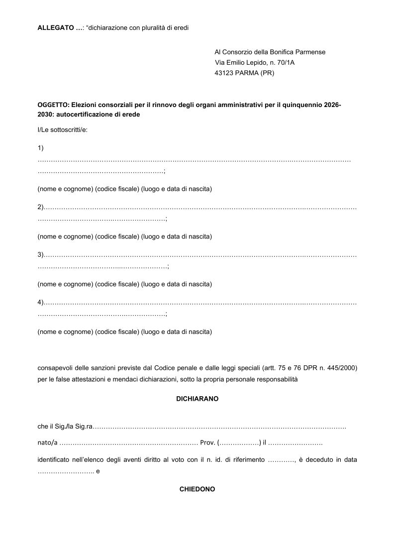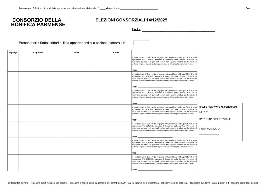 Con delibera di Consiglio n°14 del 19 settembre 2025 sono indette per domenica 14 dicembre 2025 le elezioni per il rinnovo degli organi amministrativi del Consorzio della Bonifica Parmense. Sono chiamati a votare tutti i consorziati, in regola con il pagamento del contributo.
